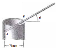 【已刪除】一、一細長均質之圓棒其長度為 225 mm,靜止放置於一內徑為 75 mm 之圓管中,如圖所示。若圓棒與圓管間接觸面之靜 摩擦係數(coefficient of static friction) µ