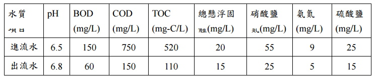 /day,含總溶解性氮 20 mg/L,總溶解性磷 5 mg/L,今