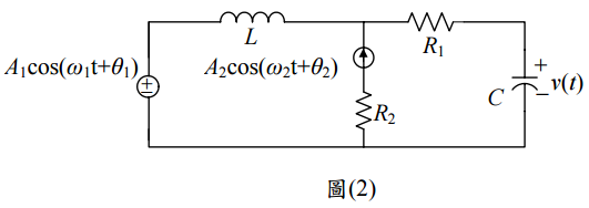 、一個電容 C。求電容電壓值 v(t)。(20 分) 圖(2)