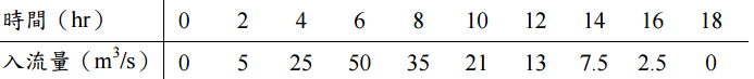 【已刪除】四、已知某河段上游端之入流量歷線如下: