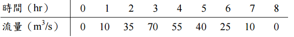【已刪除】二、某一集水區之 1-hr 單位歷線如下: