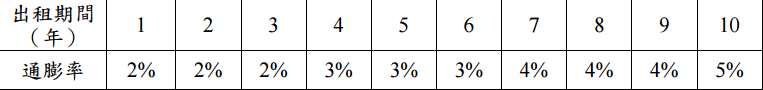 【已刪除】四、某保險公司正評估在台北東區購買某一辦公大樓的可行性。該大樓開價為 20 億元。 保險公司如買下該大樓,可租給其他公司作為商業使用,租期為 10 年,每年租金 扣除稅額後固定為 2.5 億元。保險公司預估該大樓的售價平均每年可以增值 3%,並 可在租期到期時順利轉賣出去。如保險公司購買該辦公大樓的資金成本為 10%,而 且出租期間每年的通貨膨脹率預估如下: