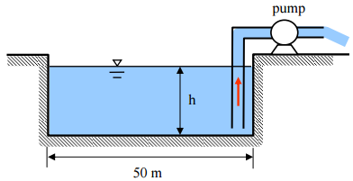 【已刪除】三、一個游泳池長 50 m,寬 25 m,初始水深 1.6 m,若想利用抽水馬達將游泳池的水抽 出,馬達的抽水流量 Q 與水深 h 的關係為: