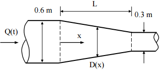 /s,T = 10 sec,流經一個圓錐形束縮斷 面,其直徑 D 隨距離 x 而變: