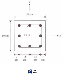 【已刪除】二、有一無側移柱,淨高 6 m,其斷面如圖二所示,f '