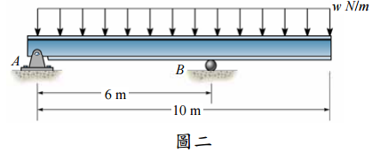 【已刪除】二、如圖二:請繪出樑結構受分佈力時之彎矩圖。(假設 w = 1000 N/m)(10 分)