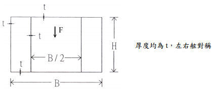 【已刪除】三、試求下圖所示薄壁船體橫剖面承受剪力 F 時,剖面上剪應力分布之求解式,並大略 畫出其分布圖。(25 分)