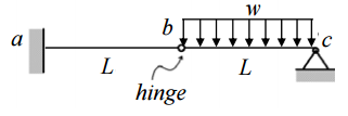 【已刪除】二、試求下圖所示梁之 b 點垂直位移量,並繪剪力圖、彎矩力圖。已知各桿彈性係數 E、 斷面積 A、斷面二次矩 I 值均相同,長度 L=6m,荷重 w=10 kN/m。(25 分)