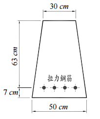 【已刪除】四、下圖所示為一梯形梁斷面主筋的配置情形。若鋼筋降伏應力為 f '