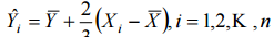⑵考慮配適線性迴歸模式 6 , 1,2, , Yi = β1Xi + ε i i = Κ 來分析上述資料,其中 1 2 6 ε ,ε ,Κ ,ε 為獨立且平均數為 0,變異數為 2 σ 之隨機變數。請寫出估計迴歸式 以及 2 R 。(6 分)