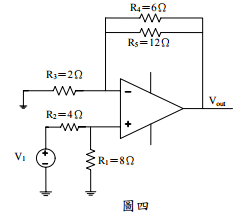 ⑶請利用圖四、圖五電路,設計一電路,使其輸出為 2V1+6V2。請不要更改圖四、 圖五電路,也不要更改任何元件值或加入新元件。