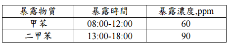 【已刪除】三、某勞工作業暴露條件如下: