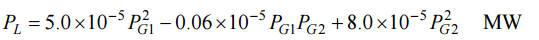 【已刪除】四、某電力系統含有兩個發電機組。該系統總輸出損失如下:
