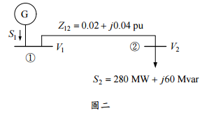 【已刪除】三、有一電力系統如圖二所示,母線①是匱乏母線(Slack bus),且V1= 1.0∠ ° 0 pu ;母 線②是負載母線(Load bus),且 S