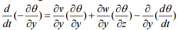 【已刪除】⑴設 x 軸平行於等位溫(θ)線,y 軸指向冷區,推導出三維運動之一維鋒生方程 (frontogenetical function),如下式所示: