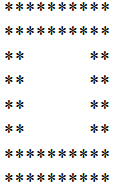 輸出:在螢幕印出如下由星號(*)組成之 n 行 m 列每條邊厚度均為 d 之空心長方形