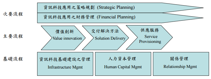 ⑴應用系統主導型:ITA 以各自獨立的應用系統為主,很少有共享的資訊科技基礎 建設。