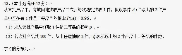 96年 - 2007年内蒙古高考真题理科数学#14337
