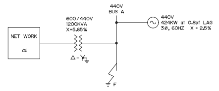【已刪除】四、部分電力系統如下圖所示,假設外接電源至 1200 KVA 變壓器的故障容量遠超過 變壓器 1200 KVA 故障容量,試以下列已知參數計算在 Bus A 之故障容量及電流? (25 分)