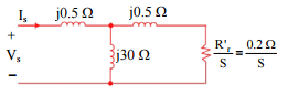 【已刪除】三、已知一台三相四極鼠籠式感應電動機,其額定電壓為 220 V,60 Hz,其定子電阻可 近似為零,而在 60 Hz 時之單相等效電路如下圖所示。試求該電動機在額定電壓時 之最大轉矩 Te及其對應之滑差 S。(20 分)