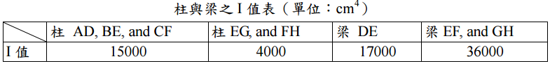 【已刪除】四、計算精確的有效長度係數在鋼結構設計中相當重要,請用查圖的方法,試求圖三結 構各柱子之有效長度係數(K)。(25 分) (鉸接(hinge)時 G 可使用 10,固接(fixed)時 G 可使用 1。)