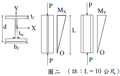 【已刪除】二、如圖二所示,一 H 500×300×15×20 鋼柱(型鋼所示尺寸 d×b