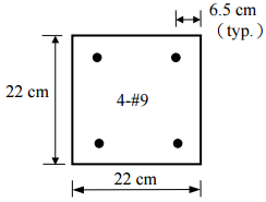【已刪除】一、試繪圖示之鋼筋混凝土柱斷面之軸力-彎矩交互作用曲線(不考慮強度折減因子)。 標示曲線上純軸力、平衡破壞、純彎矩等三點之值。ㄧ根#9 鋼筋截面積為 6.45 cm