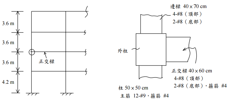 【已刪除】四、試列式說明如何設計圖示外柱的樑柱接頭?(25 分) 已知: f 'c = 280 kgf/cm