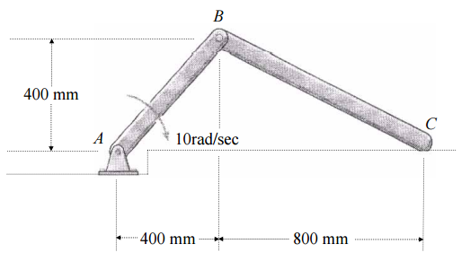 【已刪除】三、如圖所示,桿 AB 以順時鐘方向 10rad/sec 之角速度旋轉,試求 BC 桿之角速度 和 C 點之速度。(20 分)