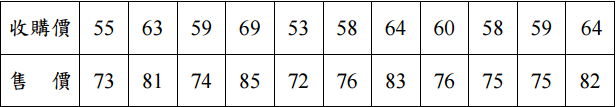 【已刪除】四、經調查某蔬果產地收購價與傳統市場售價,得到下表數據。若合理的運銷費用與利 潤是收購價的 25%,請檢定此蔬果售價是否有超越合理的價格。(25 分)