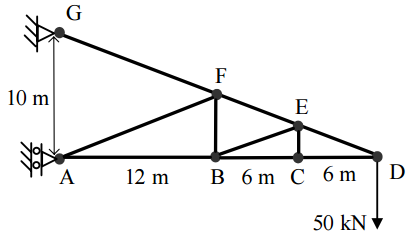 【已刪除】六、如圖之桁架,假設所有桿件之材料楊氏模數為 E,斷面積為 A。試求出各桿件軸力, 並求出 D 點之水平方向及垂直方向位移。(25 分)