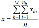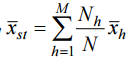 為第 h 個層的樣本平均數,h =1,2,Λ , M ;在分層 隨機抽樣下的母體平均數µ 的估計式為