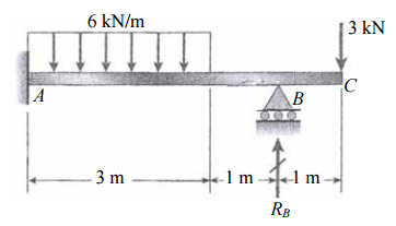 【已刪除】五、樑 ABC 其左端固定於 A 點,B 點為一簡支點,如圖所示。在承受圖示之荷重時,試 求 A、B 兩支撐之反作用力。假設樑之彎曲剛度(flexural rigidity)為 EI = 4 MN-m