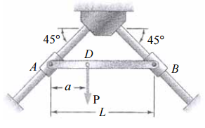 【已刪除】一、桿件 AB 其長度為 L,兩端連接滑塊,可在斜桿上滑動,一荷重 P 作用於 D 點上, 其與 A 點之距離為 a,已知滑塊與斜桿之靜摩擦係數(coefficient of static friction) µs 為 0.3,若不考慮 AB 桿之重量,試求維持 AB 桿在平衡狀況下,a/L 之最小比值 為多少?(20 分)