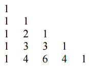 請用你所熟悉的高階程式語言以遞迴(Recursive)的方式,寫出一個程式可以印出 n 層 的巴斯卡三角形,其中 n 是當場輸入並限制為小於 100 的正整數。(20 分)