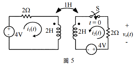 【已刪除】五、如圖 5 所示,若 t < 0 時電路為穩態,在 t = 0 時將開關關閉。求 v