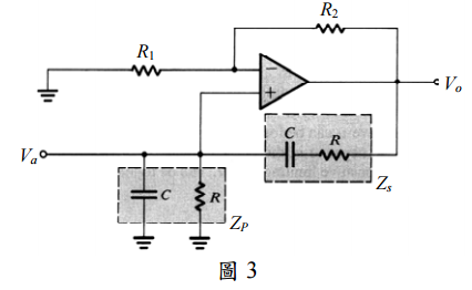 【已刪除】三、試求圖 3 之韋恩–橋式振盪器電路中回授網路的轉換式[V