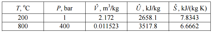 【已刪除】一、根據下表-水之熱力學性質,請計算出過熱水蒸氣在1 bar,200o C(state 1)及400 bar, 800