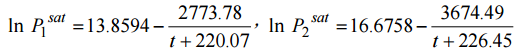 C。活性係數可由范拉方程式(van Laar equation)求得