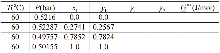 【已刪除】六、某一雙成份系統之氣液平衡數據如下:
