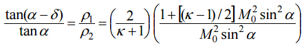 【已刪除】⑴請利用二維斜震波公式與比熱比κ = 1.4,計算出此飛行物之飛行馬赫數 M