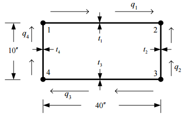 =1400lb /in 機翼從翼根到翼尖總長為120′′,請求出機翼所產生的扭角(剪力常數為G = 4×10