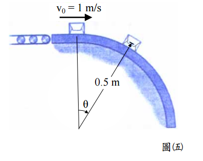 = 1 m/s 之速度,送進一平滑之圓弧路徑, 若圓弧路徑之半徑為 0.5 m,求算當包裹開始離開圓弧路徑之最大角度。(20 分)