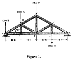 【已刪除】1. Determine the force in member GC of the truss as shown in Figure 1,and state if this member is in tension or compression. (20%)