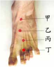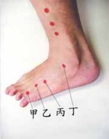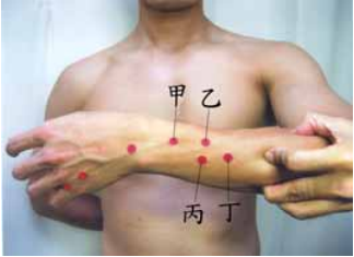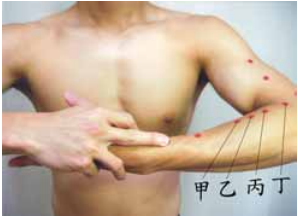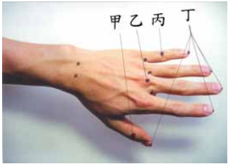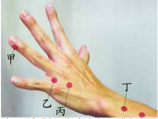 (A)補甲:中衝穴 (B)瀉乙:液門穴 (C)補丙:中渚穴 (D)瀉丁:養老穴