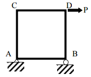 【已刪除】三、吾人用四根相同長度 L 的桿件(ROD)構成如圖中的正方形 truss 框架。求解該框 架 D 點受橫向外力 P 作用後,A 點與 B 點的反作用力。(25 分)
