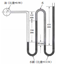 【已刪除】三、有一複合壓力計(Compound Manometer)如圖所示,試求 A 點之錶壓力。水的比 重為 9.8kN/m