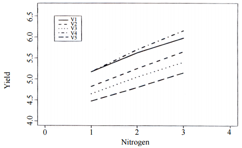 【已刪除】 ⑶下圖是根據十五個處理組合平均值所繪製之交感圖,請問品種與氮肥的交感顯著嗎?簡短說 明 )。9分
