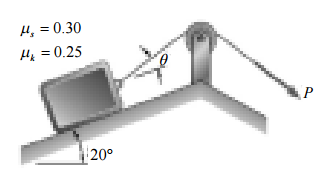 = 0.25 。當圖中之外力 P = 60 N、角度 θ= 15° 時,請問方塊是否處 於平衡狀態?如果不是,請問方塊與斜面間摩擦力的大小與方向各為何?(25 分)