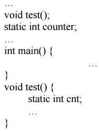 請問第一個 static(static int counter;)作用何在?第二個 static(static int cnt;)作用 何在?(10 分)